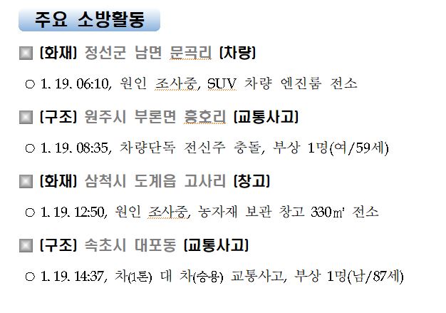 강원도 소방활동 주간상황(1. 19. 화) 17:00