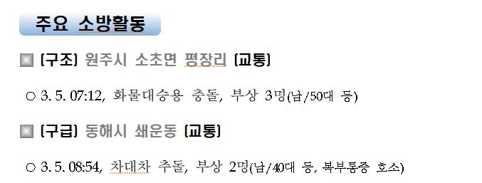 강원도 소방활동 주간상황(3. 5. 금) 17:00