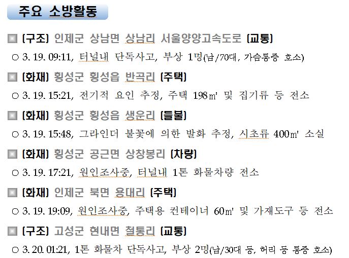 강원도 소방활동 일일상황 (3. 20. 토) 06:00