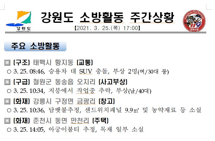 강원도 소방활동 주간상황(3. 25. 목) 17:00