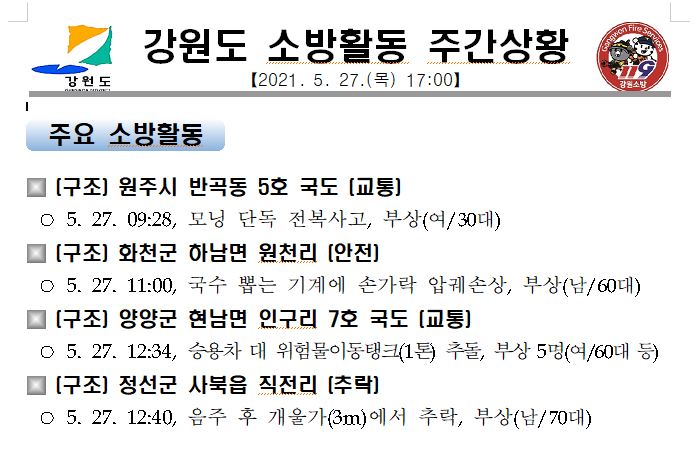 강원도 소방활동 일일상황 등(5. 27. 목) 17:00