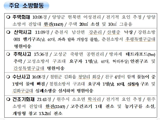 강원도 소방활동 일일상황 (7. 26. 월) 06:00