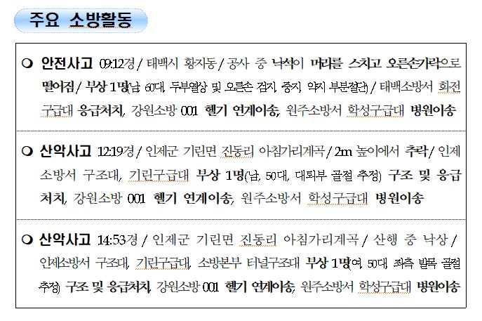 강원도 소방활동 주간상황 (8. 3. 화) 17:00