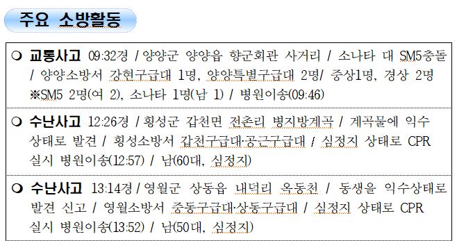 강원도 소방활동 주간상황 (8. 7. 토) 17:00