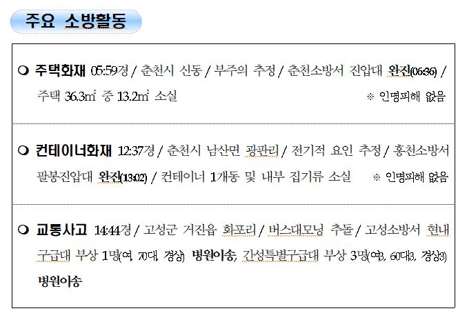 강원도 소방활동 주간상황 (8. 19. 목) 17:00