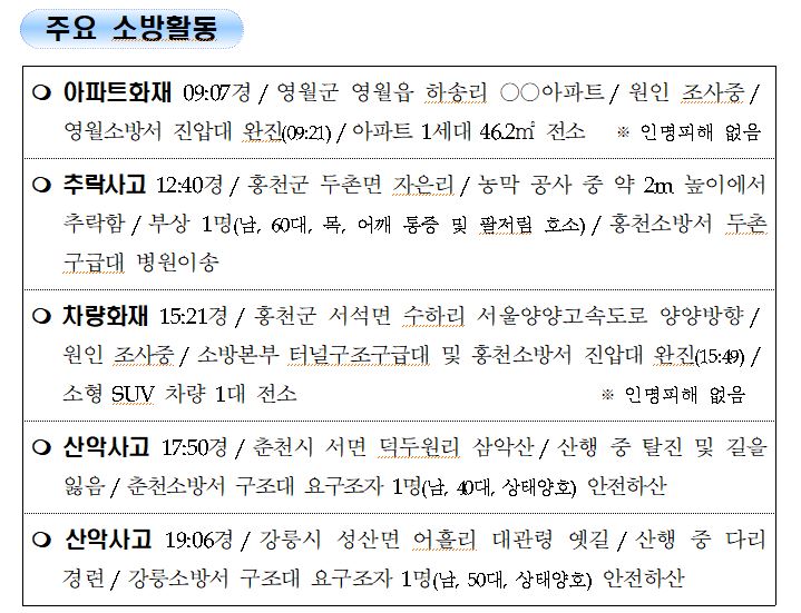 강원도 소방활동 일일상황 (8. 31. 화) 06:00