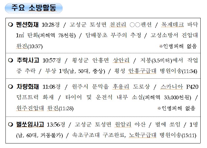 강원도 소방활동 일일상황 (9. 6. 월) 17:00