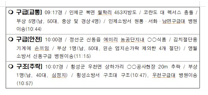 강원도 소방활동 주간상황 (12. 10. 금) 17:00
