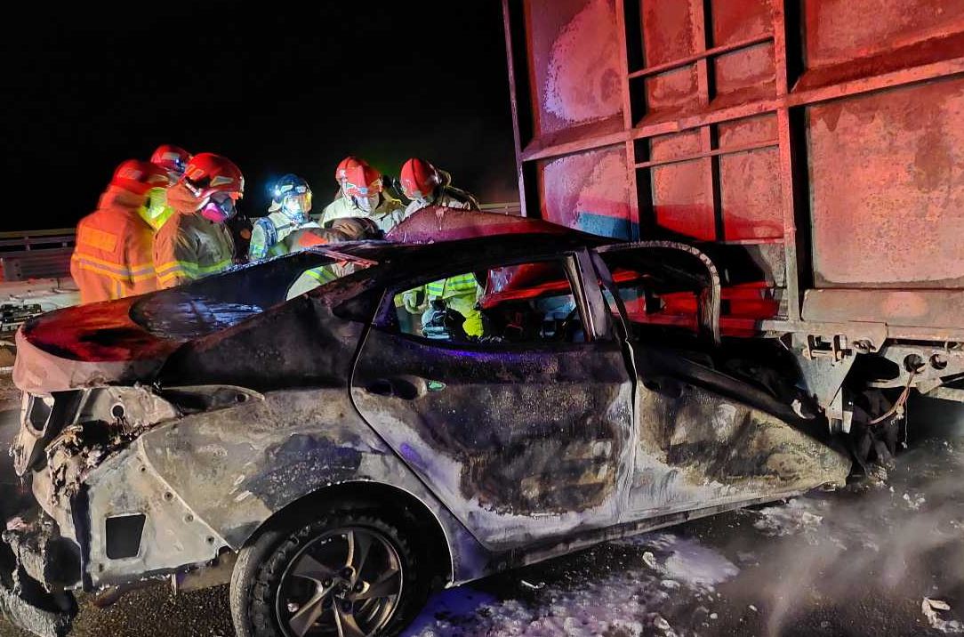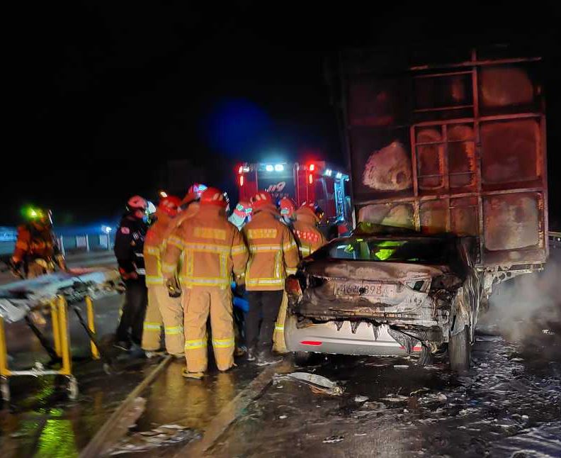 3. 내용 : 아반테 차량이 25톤 화물을 추돌후 밑에 끼이면서 화재발생