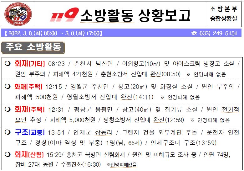 119 소방활동 상황보고(3. 8. 화) 17:00