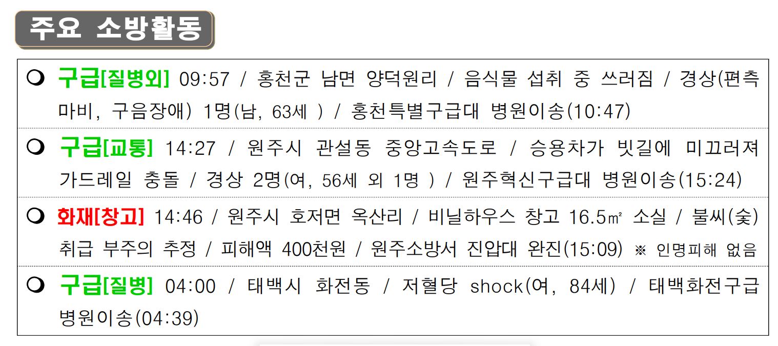 119 소방활동 상황보고(3. 15. 화) 06:00