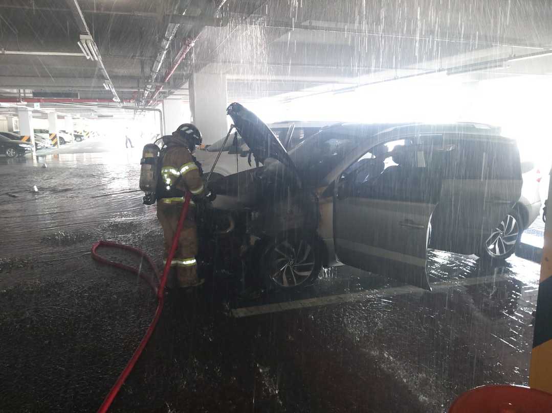 차량화재 발생되어 스프링클러설비 작동 됨