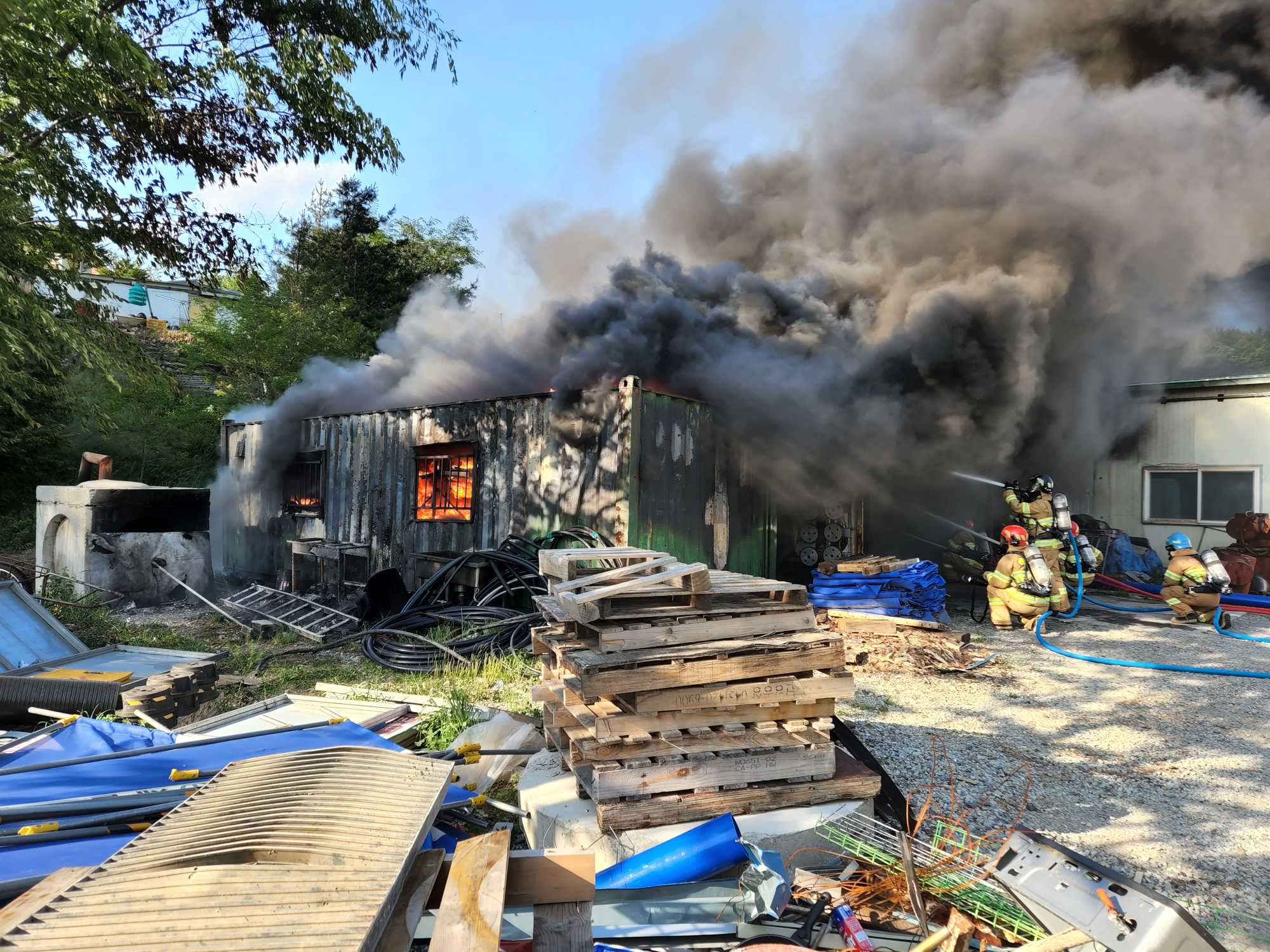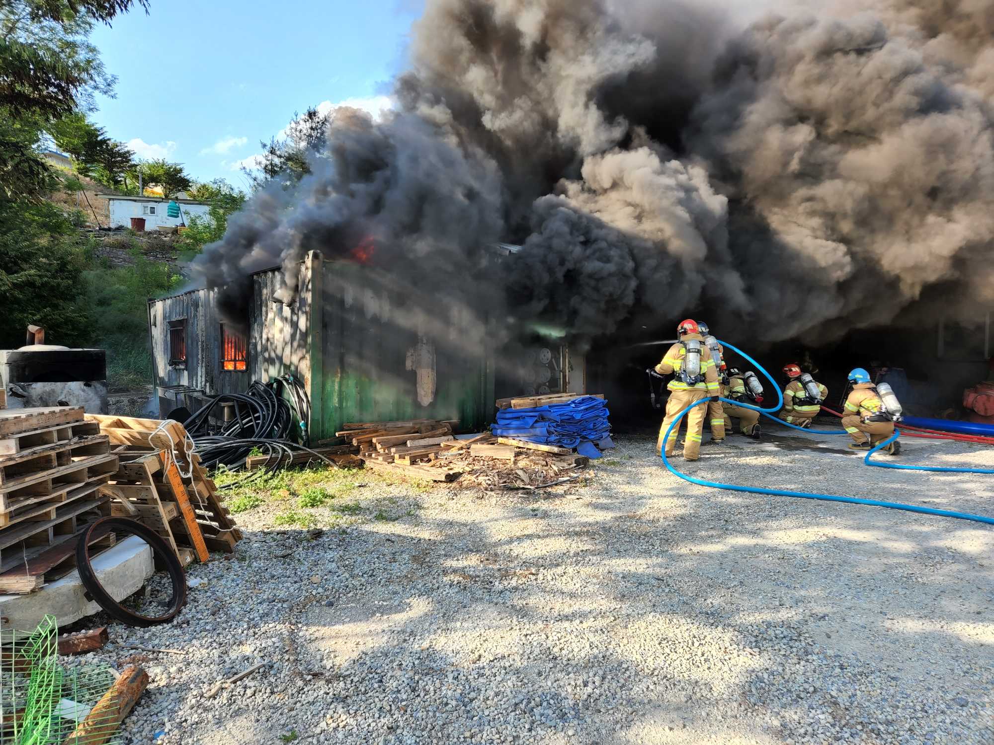 119 소방활동 상황보고(6. 01. 수) 06:00 및 태백 컨네이너 화재 진압 사진