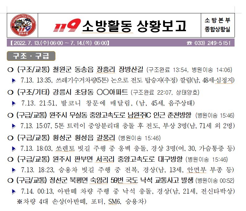 119 소방활동 상황보고(07. 14. 목) 06:00