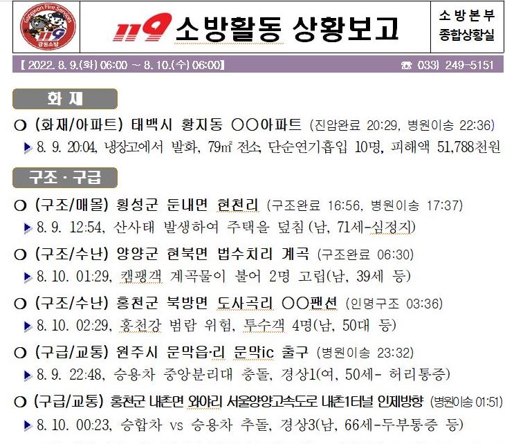 119 소방활동 상황보고(8. 10. 수) 06:00