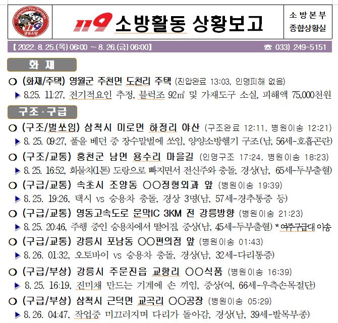 119 소방활동 상황보고(08. 26. 금) 06:00