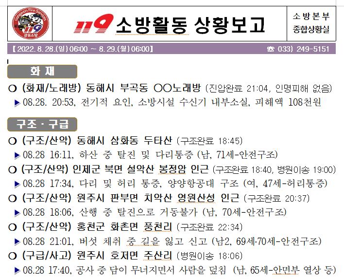 119 소방활동 상황보고(8. 29. 월) 06:00