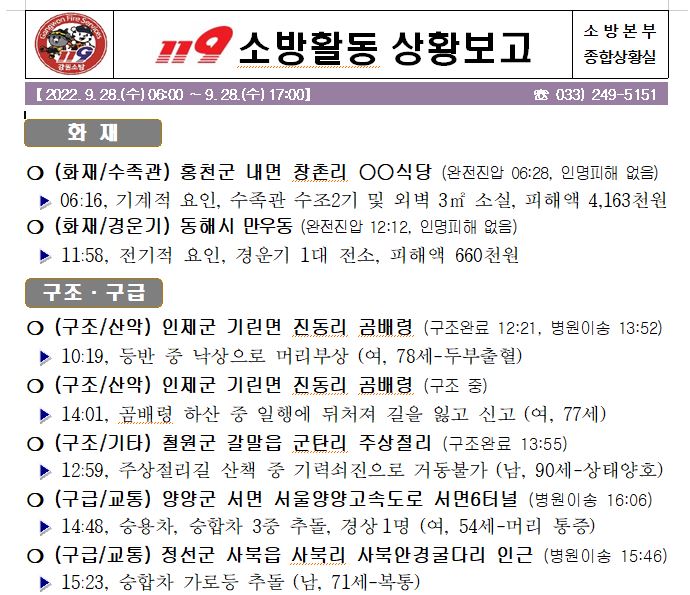 119 소방활동 상황보고(9. 28. 수) 17:00