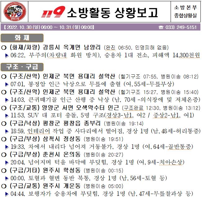 119 소방활동 상황보고(10. 31. 월) 06:00