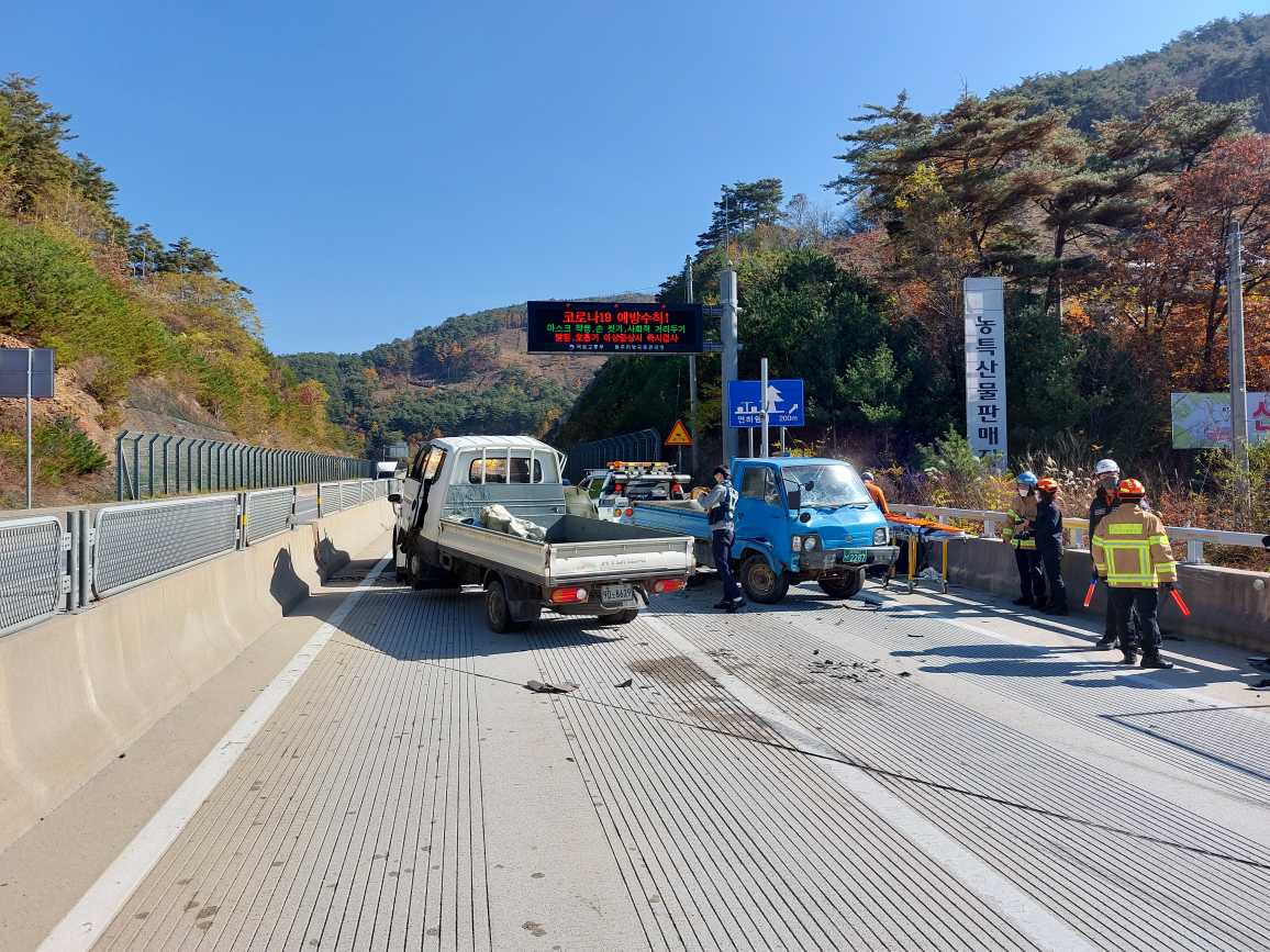 신고( 11:24), 1톤 화물 vs 1톤 화물 추돌, 중상1(여, 59세-두부부종), 경상1(남, 54세-가슴통증)