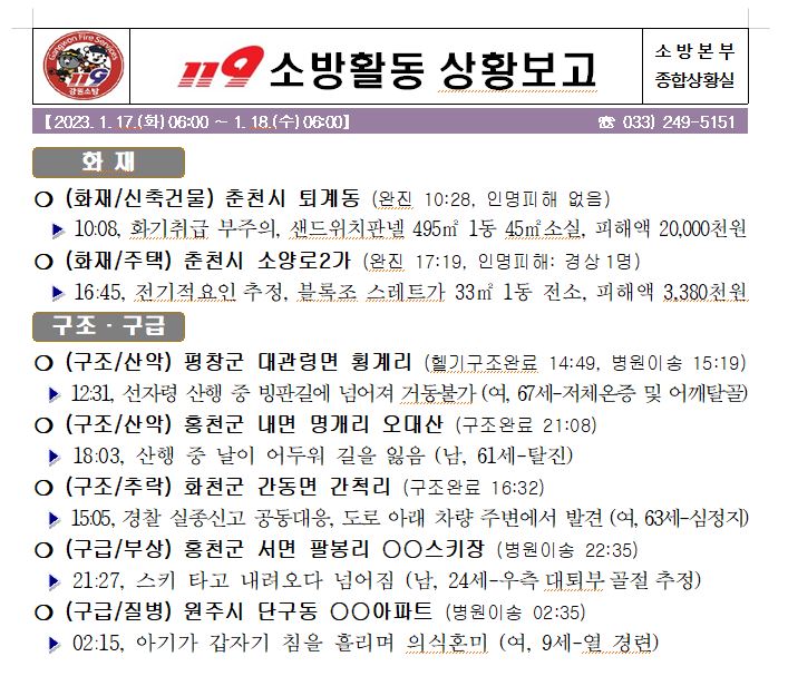 119 소방활동 상황보고(1. 17. 화) 17:00
