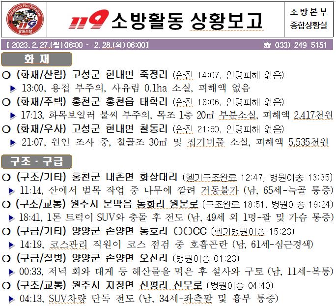 119 소방활동 상황보고(2. 28. 화) 06:00