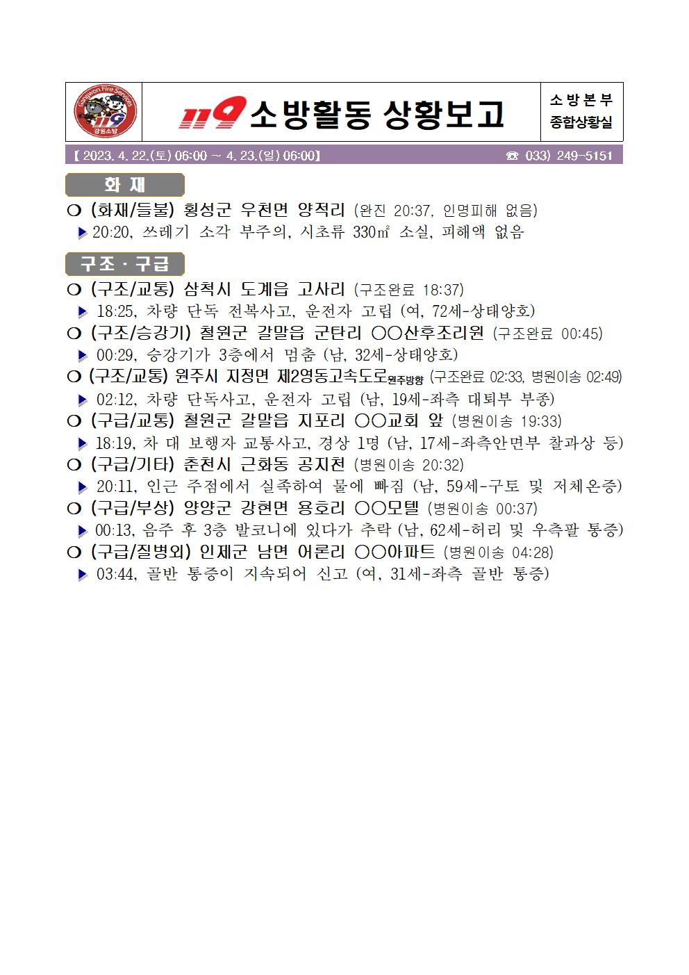 119 소방활동 상황보고(4. 22. 일) 06:00