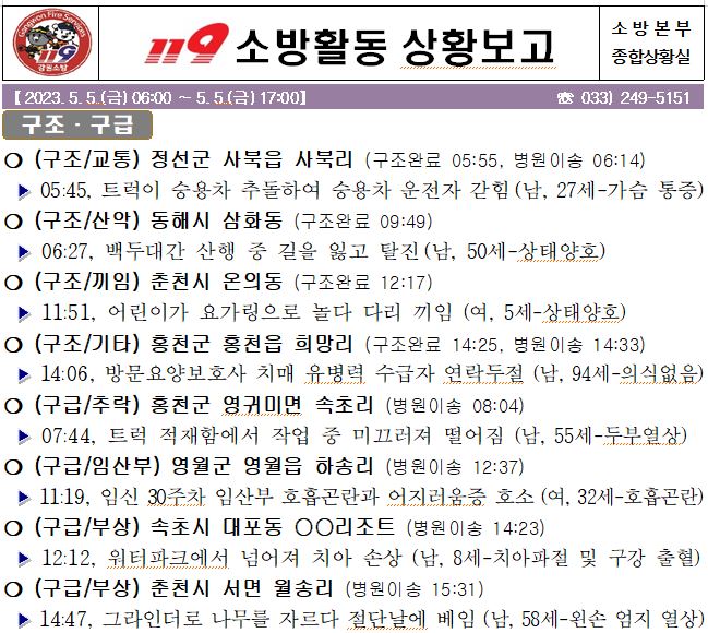 119 소방활동 상황보고(5. 5. 금) 17:00
