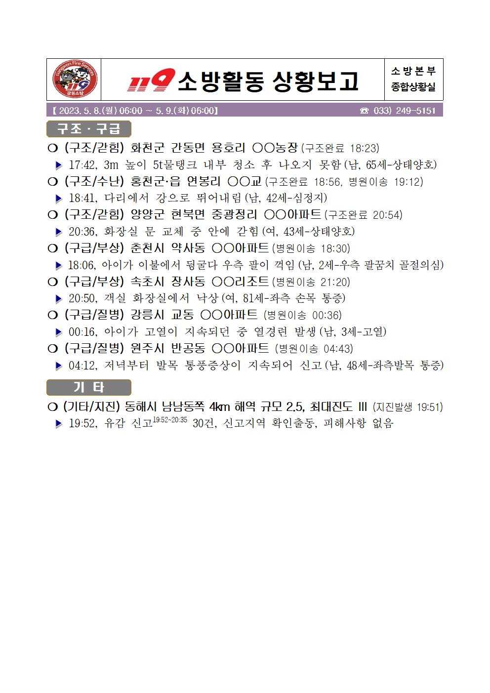 119 소방활동 상황보고(5. 8. 월) 17:00