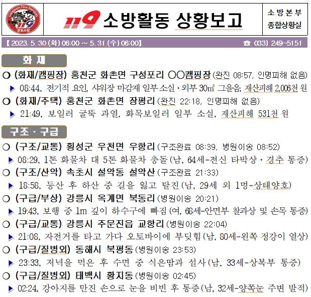 119 소방활동 일일상황보고(5.31.수) 06:00