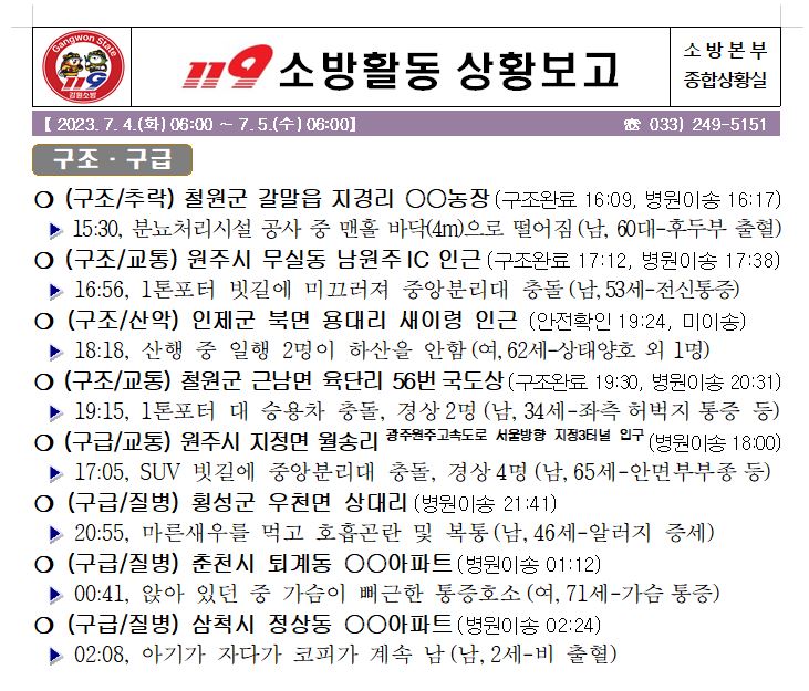 119 소방활동 일일상황보고(7. 5.수) 06:00