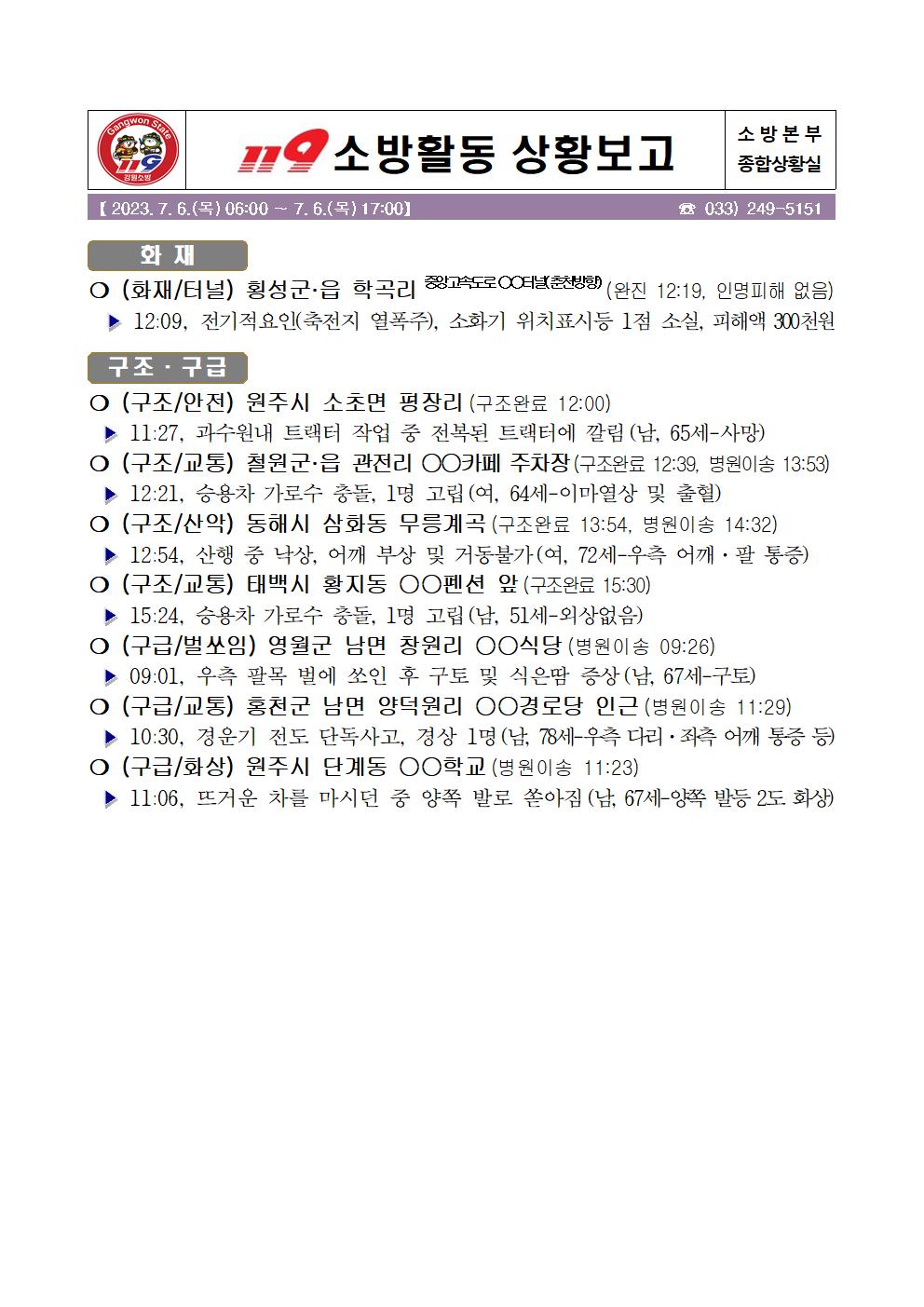119 소방활동 일일상황보고(7.6.목) 06:00