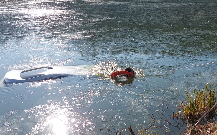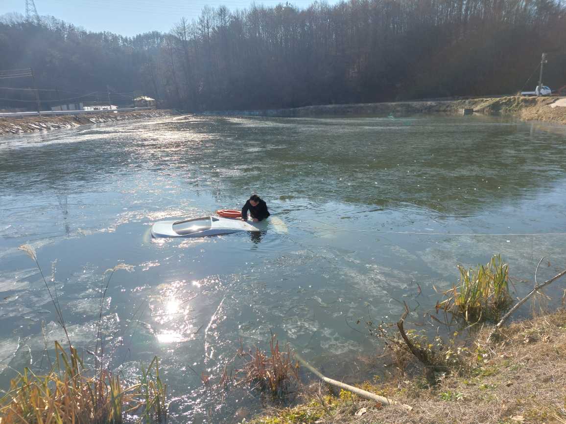 횡성 공근면 회전저수지 차량 추락 인명구조 관련 사진 2점
