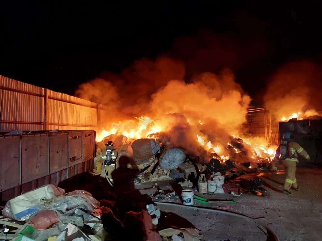 강릉 병산동 재활용시설 화재 관련 사진 2점