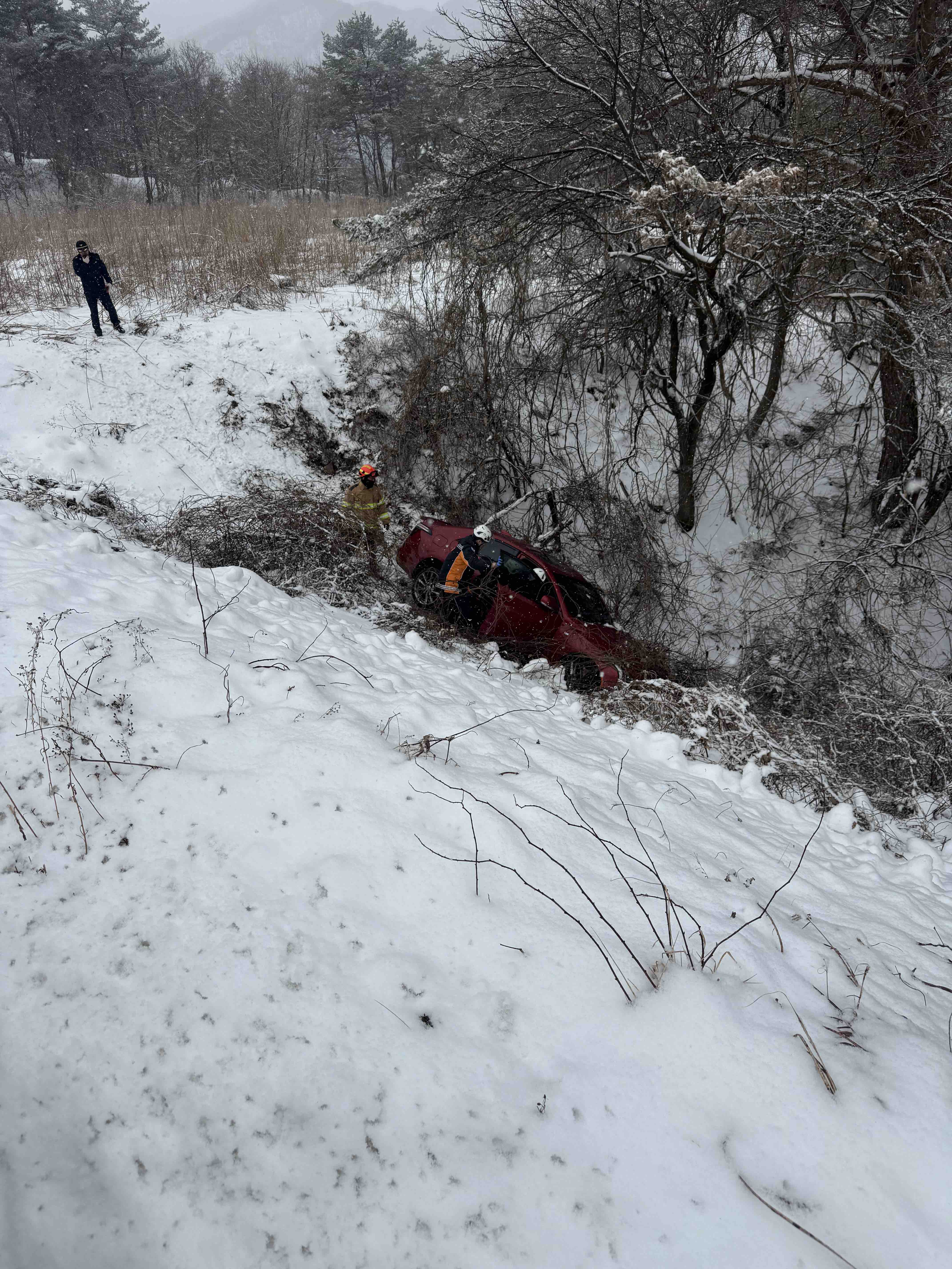 3. 내 용 : 캐딜락 승용차 1대 눈길에 경사지로 미끄러져 구조대상자 1명 발생하여