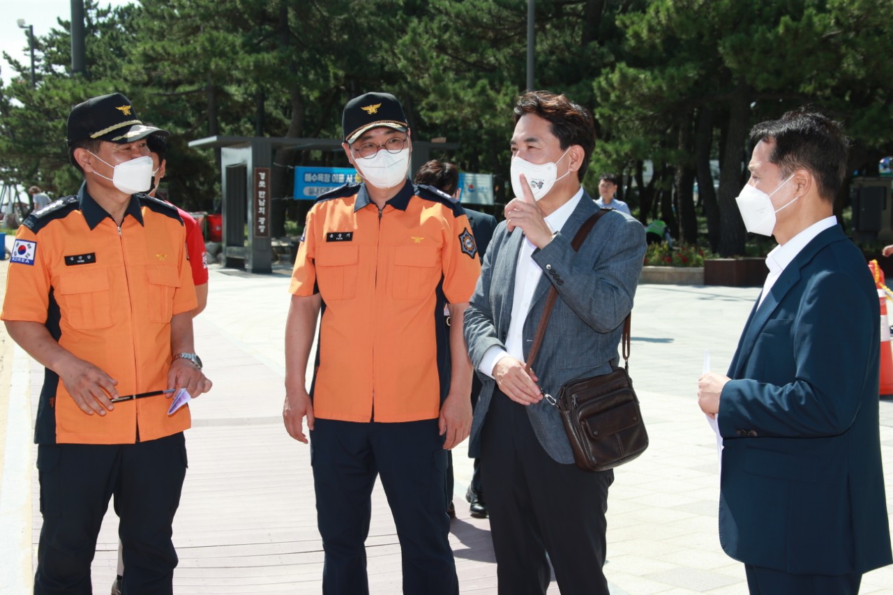 김진태 도지사, 경포해수욕장 119수상구조대원 격려