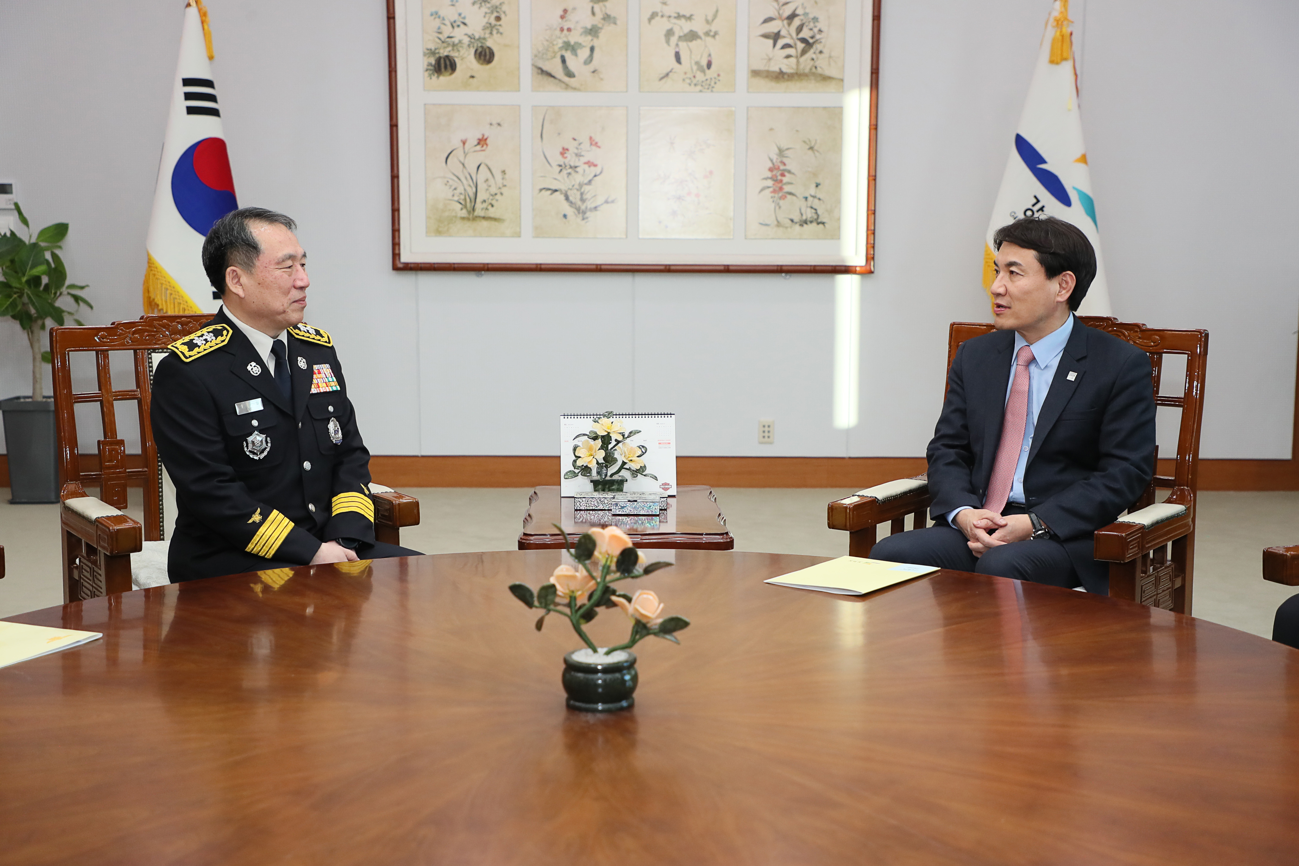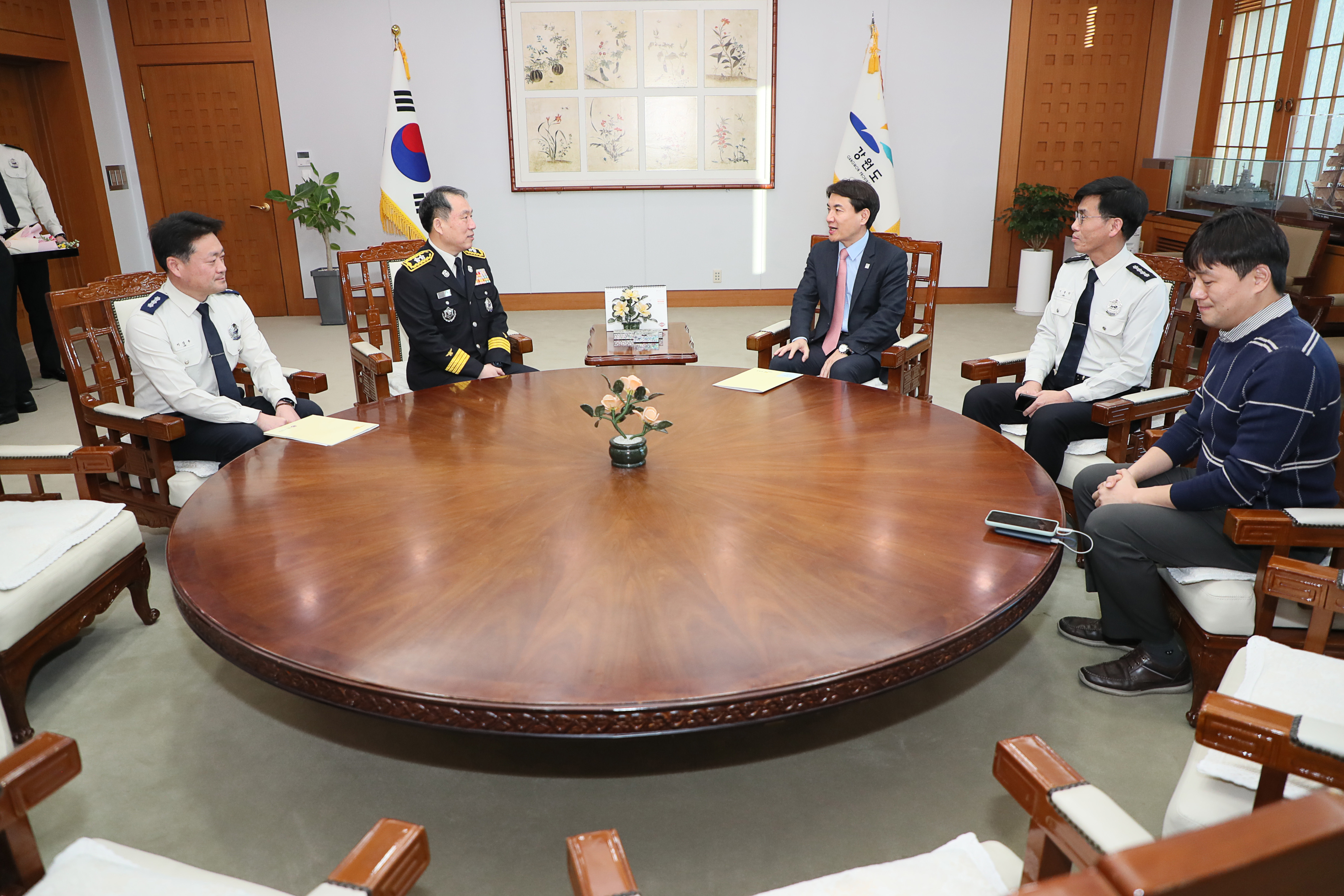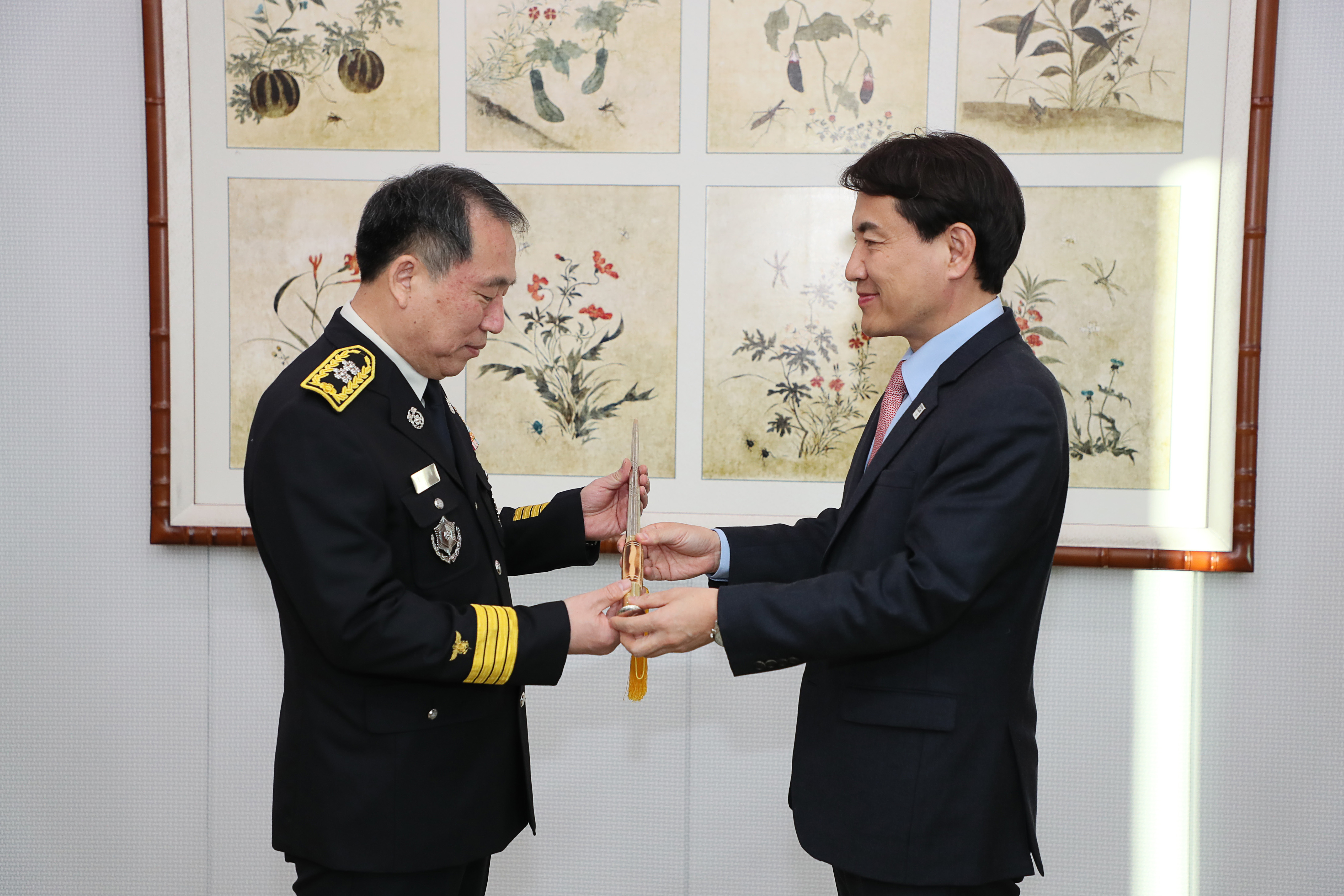 김진태 도지사 이일 신임본부장에게 신고 받고 지휘봉 수여