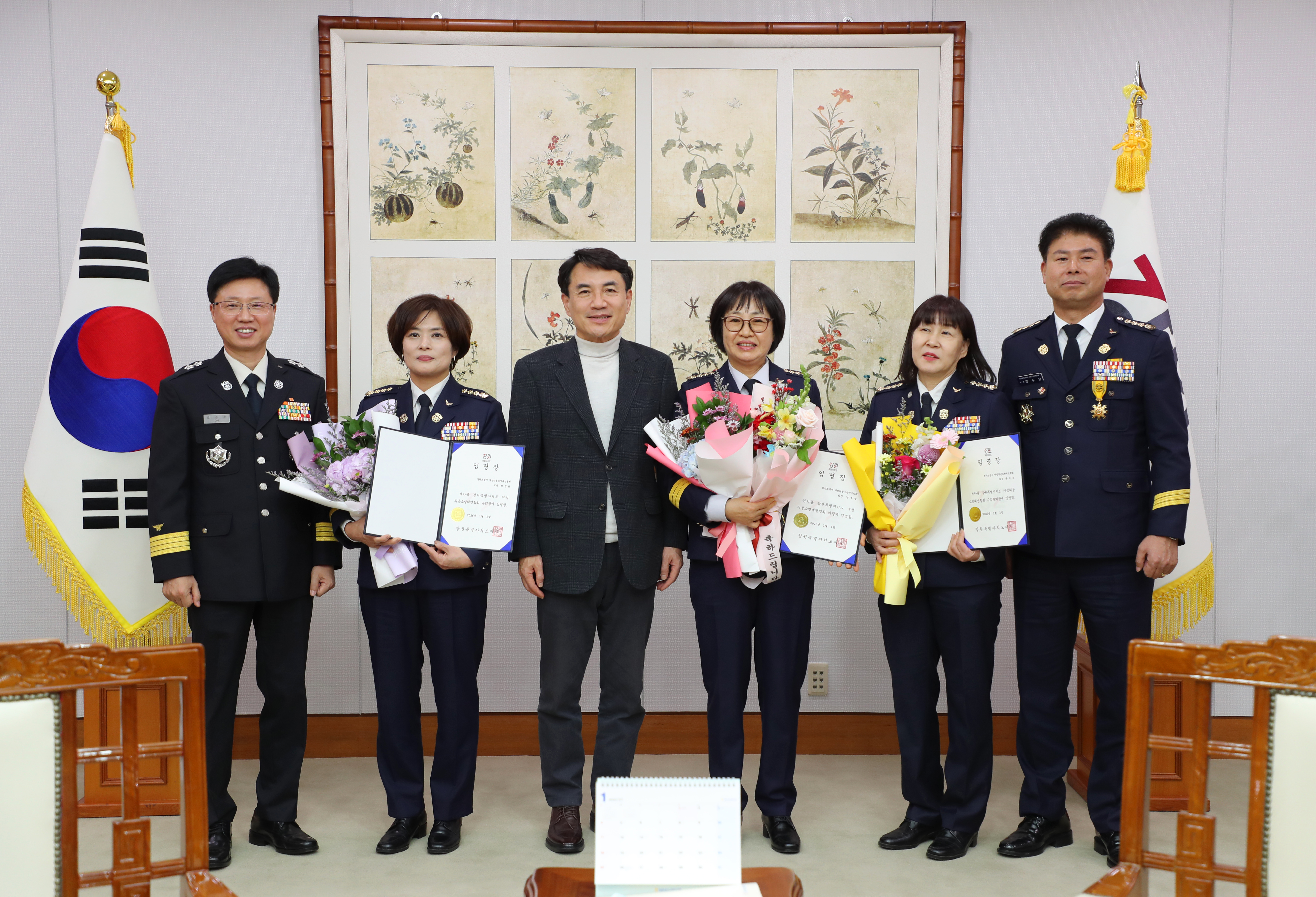 강원특별자치도 소방본부(본부장 오승훈)는 9일 도청 통상상담실에서 김진태 도지사가 참석한 가운데 신임 여성의용소방대연합회 임원 임명장 수여식을 개최했다.