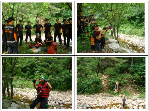 양구119안전센터(춘천소방서장 조완구)에서는 2012. 6.11(금) 양구군 남면 광치휴양림 계곡에서 계곡구조훈련을 실시하였습니다. 곧 다가올 휴가철을 대비하여 갑작스런 폭우 등으로 계곡 고립시 구조장비를 사용하여 계곡 건너편 요구조자를 구조하는 가상훈련을 실시하였습니다. 날은 조금 더웠지만 실제 구조장비를 현장에 활용하여 숙달하는 훈련에 보람된 하루였습니다.