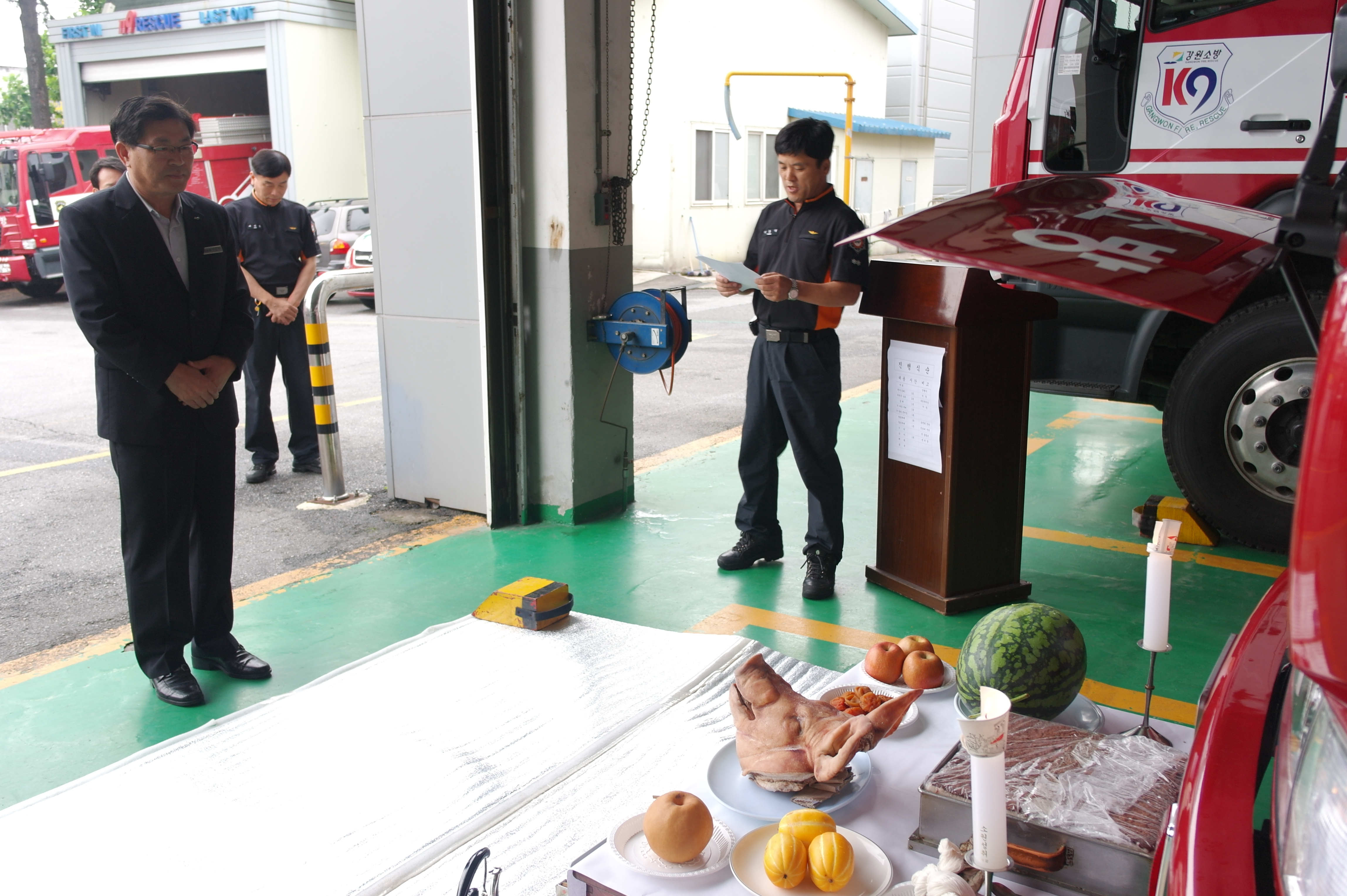 옥천119안전센터 신규 소방펌프차 안전기원제를 가졌습니다.