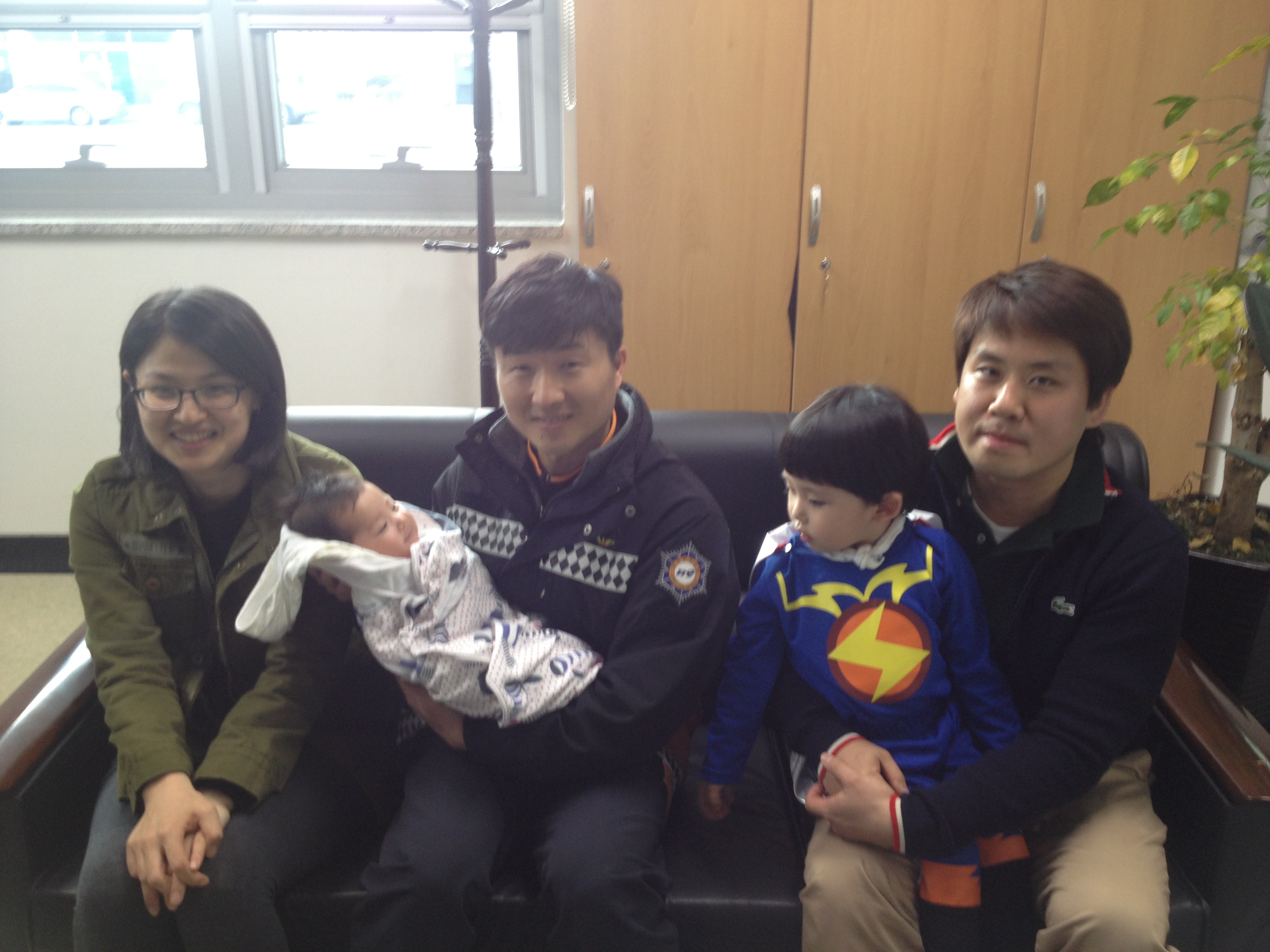 당시 아기는 저체중이고 양수가 적어 조산 위험이 있어 산모가 극도로 불안한 상태였으나, 구급대원(소방교 지영석,소방교 조영민)이 신속 침착하고 적절하게 분만처리를 해주어 모두 무사하게 출산하게 되었고, 이를 잊지않고 진심어린 고마움을 표하고 싶어 직접 방문한 것입니다.