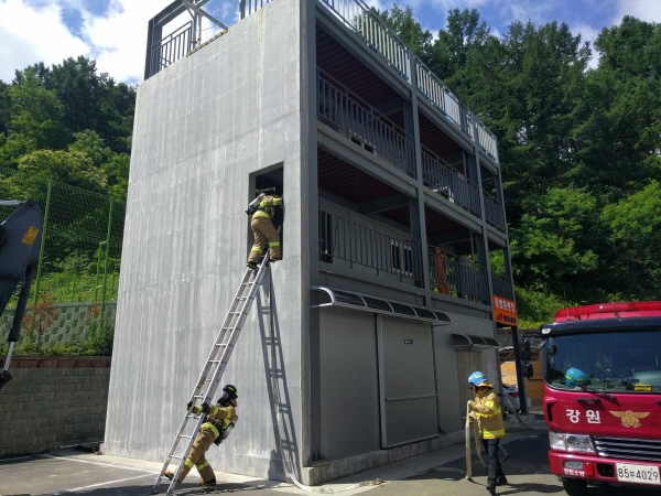 이번 훈련은 원인 미상의 화재로 2층에서 화재가 발생, 3층으로 연소확대하는 상황을 가정하여. 구조대원이 로프를 활용한 건물 진입, 요구조자 인명검색, 사다리를 활용한 내부진입 등 현장에서 발생할 수 있는 여러 상황에 맞춰 진행했다.