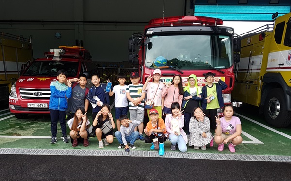 이날 소방서 견학과 소방안전교육 프로그램은 화재 발생 시 아이들이 해야 할 행동 요령과 안전의식을 높이는 데 중점을 둬 소방차량에 대한 설명과 심폐소생술, 물소화기 체험으로 아이들의 흥미를 유발하고 안전에 대해 관심을 가질 수 있도록 체험위주로 진행됐다.