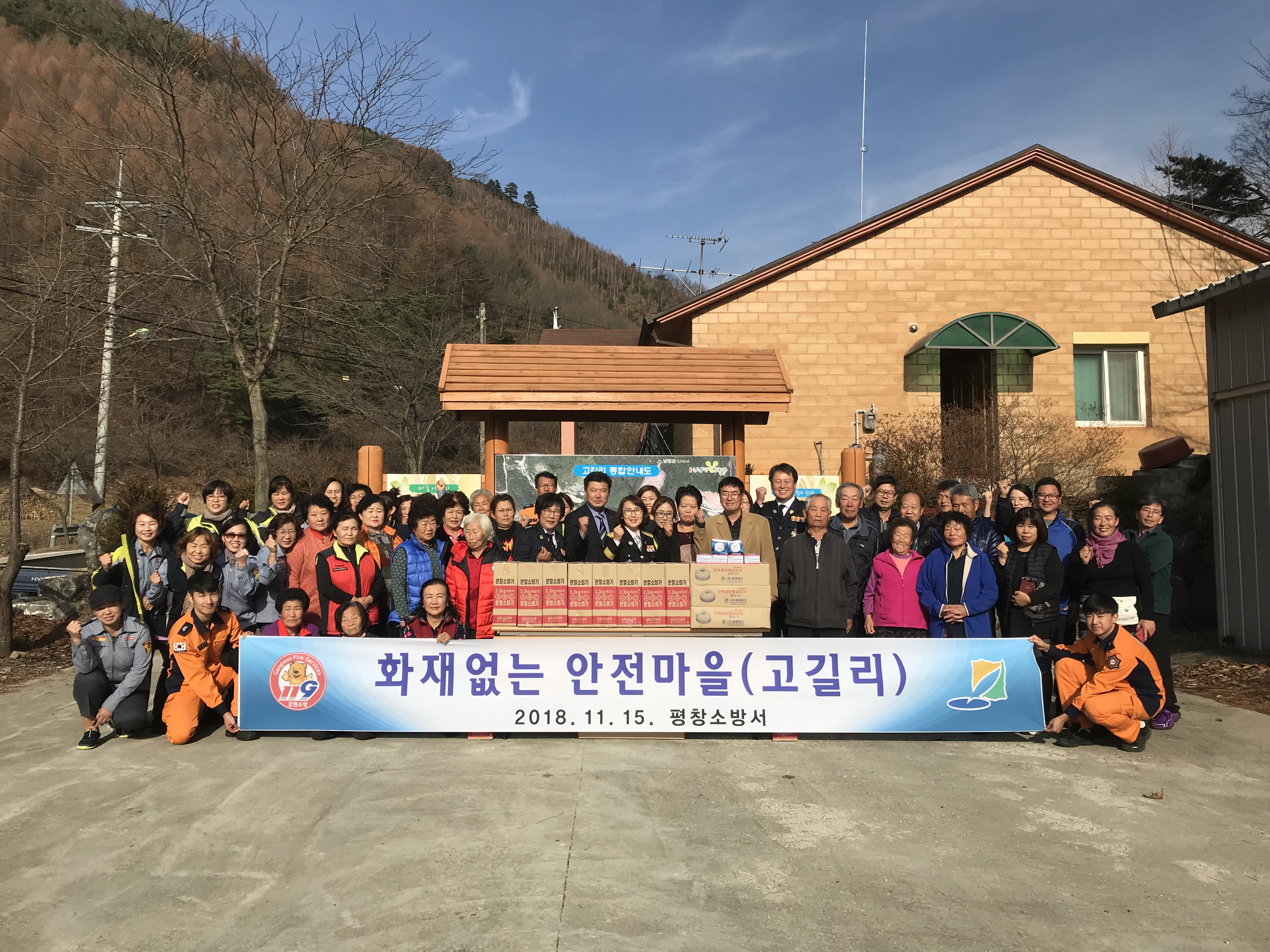 평창소방서(서장 김정희)는 15일 오후 2시 평창읍 고길리마을에서 소방공무원과 평창읍사무소, 의용소방대원, 지역주민 등 60여 명이 참석한 가운데 ‘2018년 화재 없는 안전마을’ 조성 행사를 개최했다.