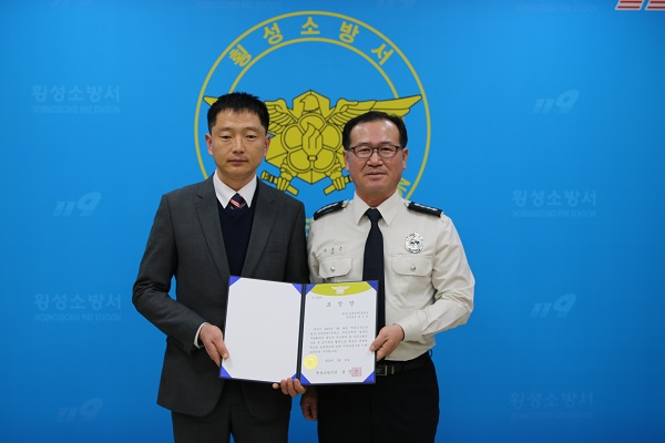 횡성소방서(서장 유중근)는 31일 오전 10시 전략상황실에서 차량화재 진압 유공자인