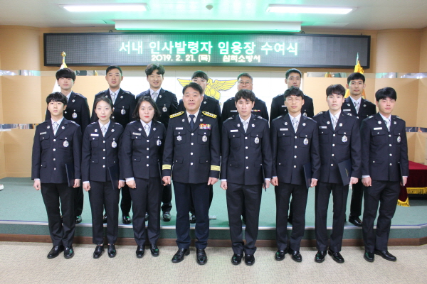 삼척소방서(서장 주진복)는 21일 오전 9시 소방서에서 신규 및 전입자 등 서내 인사발령자 14명에 대한 임용장 수여식을 가졌다.