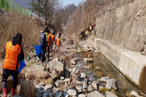 꽃샘추위에도 불구하고 미탄여성의용소방대는 동강으로 유입되는 창리천 정화 활동을 실시하여 지역주민들이 쾌적한 환경에서 생활 할 수 있는 여건을 조성하였으며, 환경정화 캠페인을 실시하였다