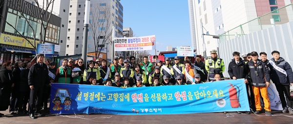 강릉소방서(서장 진형민)는 20일 오후 2시 강릉 중앙시장, 성남시장에서 소방공무원과 의용소방대원 100명, 유관기관과 단체 등 180명이 참여한 가운데 ‘도민안전의 날’과 ‘제283차 안전점검의 날’을 맞아 설 대비 “고향집, 주택용 소방시설 선물하기”집중 홍보 캠페인을 실시했다고 밝혔다.
