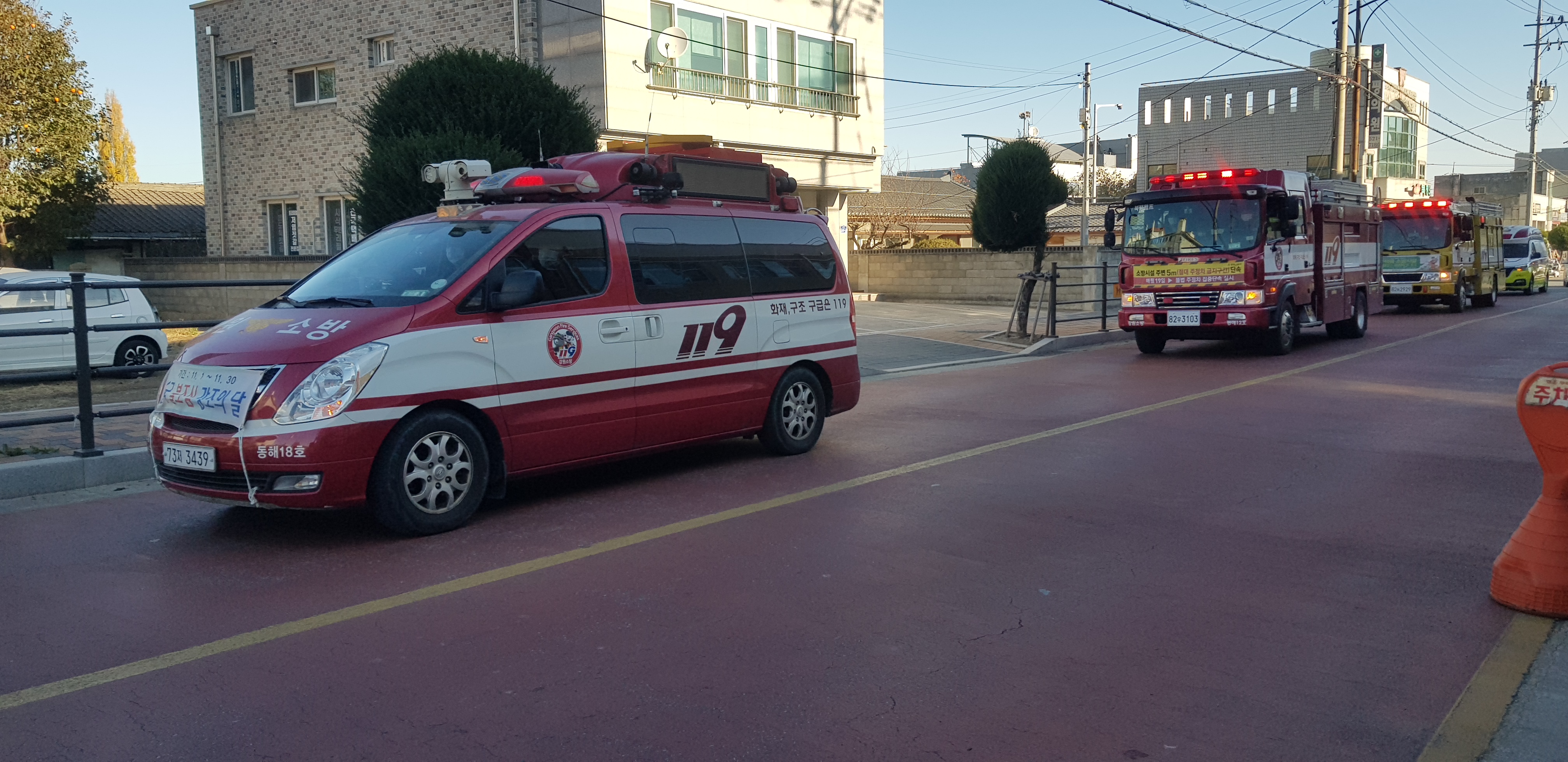 동해소방서(서장 김정희)는 9일 오전 9시 ‘11월 불조심 강조의 달’을 맞아 화재 예방 분위기 조성과 안전의식 강화를 위한 소방차 퍼레이드ㆍ소방차 길 터주기 캠페인을 실시했다고 밝혔다.