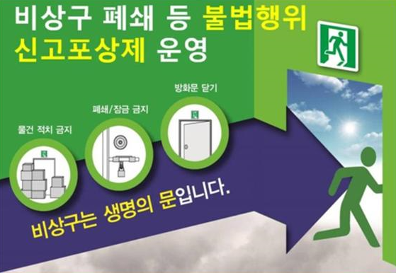 ○ 비상구 등 신고 포상제는 화재 발생 시 안전이 확보되는 피난처로 가기 위한 중요한 소방시설인 비상구에 대한 관심과 자발적 신고를 유도하고 해당 시설 관계자 모두의 경각심을 일깨워주기 위함을 목적으로 추진된다.